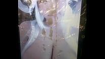 一个穿着破皮紧身裤的女孩坐在我的鸡巴上,要求我射在她的屁股上